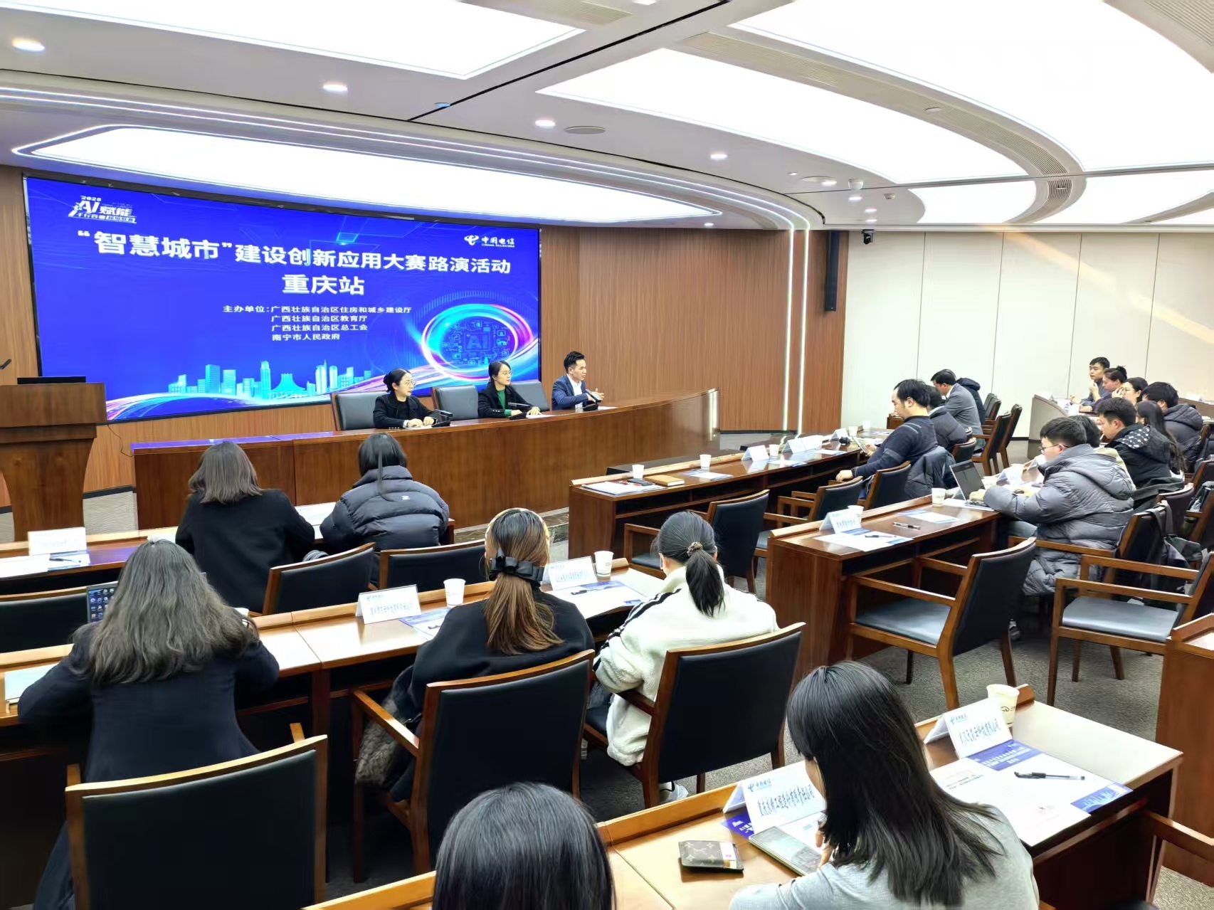 12月18日至19日,自治区住房城乡建设厅赴重庆市开展AI赋能千行百业超级联赛(A超)——“智慧城市”建设创新应用大赛路演活动。大赛筹备工作组先后走进重庆市建设信息中心、有关高校和企业,通过政策解读、赛制说明与产业考察相结合的形式,搭建起科技创新与产业需求的对接桥梁。