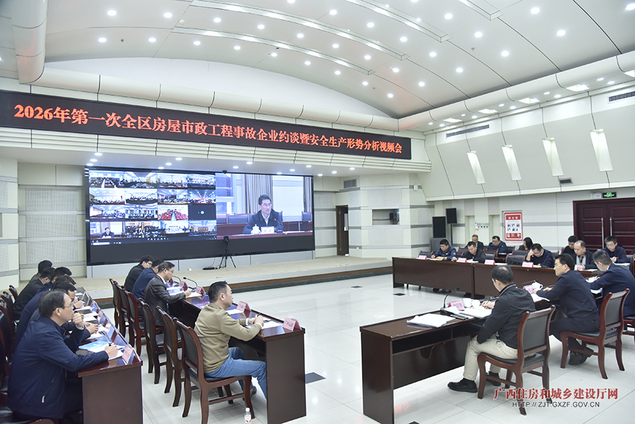 1月19日,自治区住房城乡建设厅组织召开2026年第一次全区房屋市政工程事故企业约谈暨安全生产形势分析视频会议,深入分析当前安全生产形势,集中约谈近期事故企业,部署下一步重点工作。自治区住房城乡建设厅党组成员、副厅长崔磊出席会议并讲话。