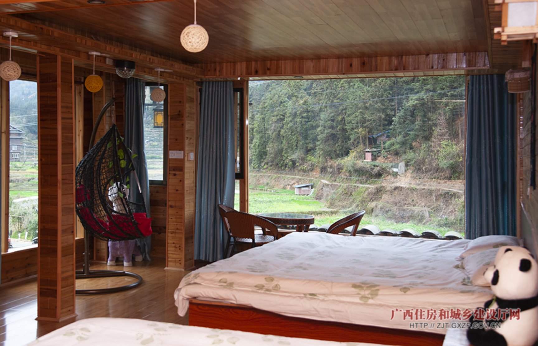 吴灿月经营的民宿房间为侗族木质建筑