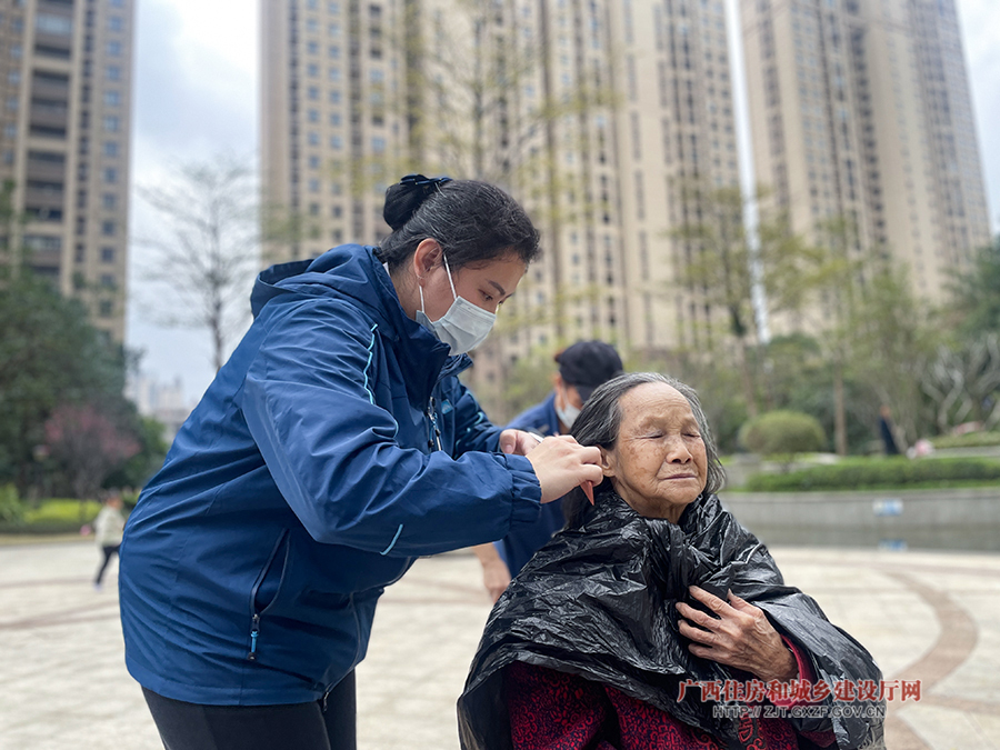 小区物业春节前组织便民社区活动,林梦妃在为业主理发