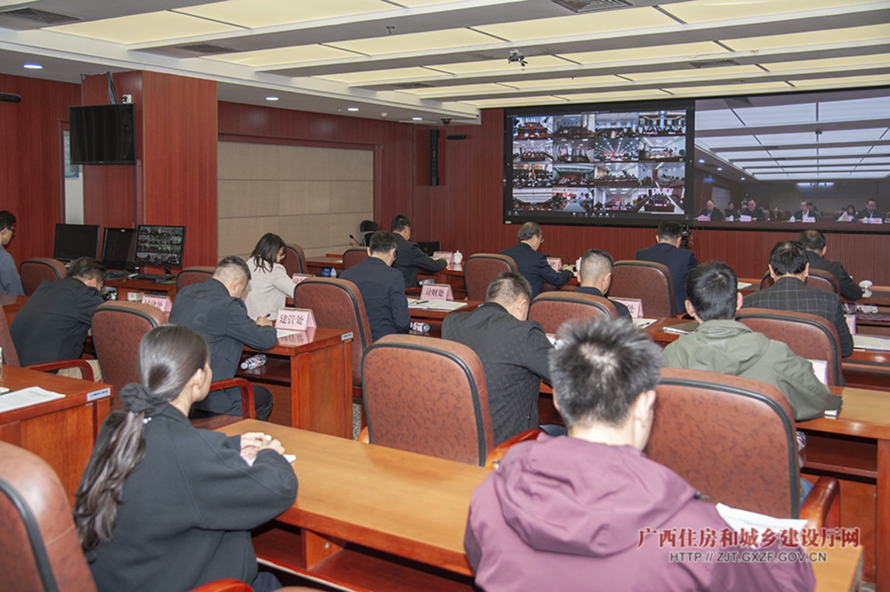 自治区住房城乡建设厅有关处室、驻厅纪检监察组有关负责同志在主会场参加会议,各设区市住房城乡建设系统有关部门负责同志在分会场参会。(黄新婷/文、图)