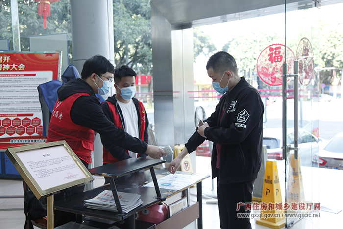 团员志愿者在南宁市保障住房资格审核和管理中心为来往人员测温