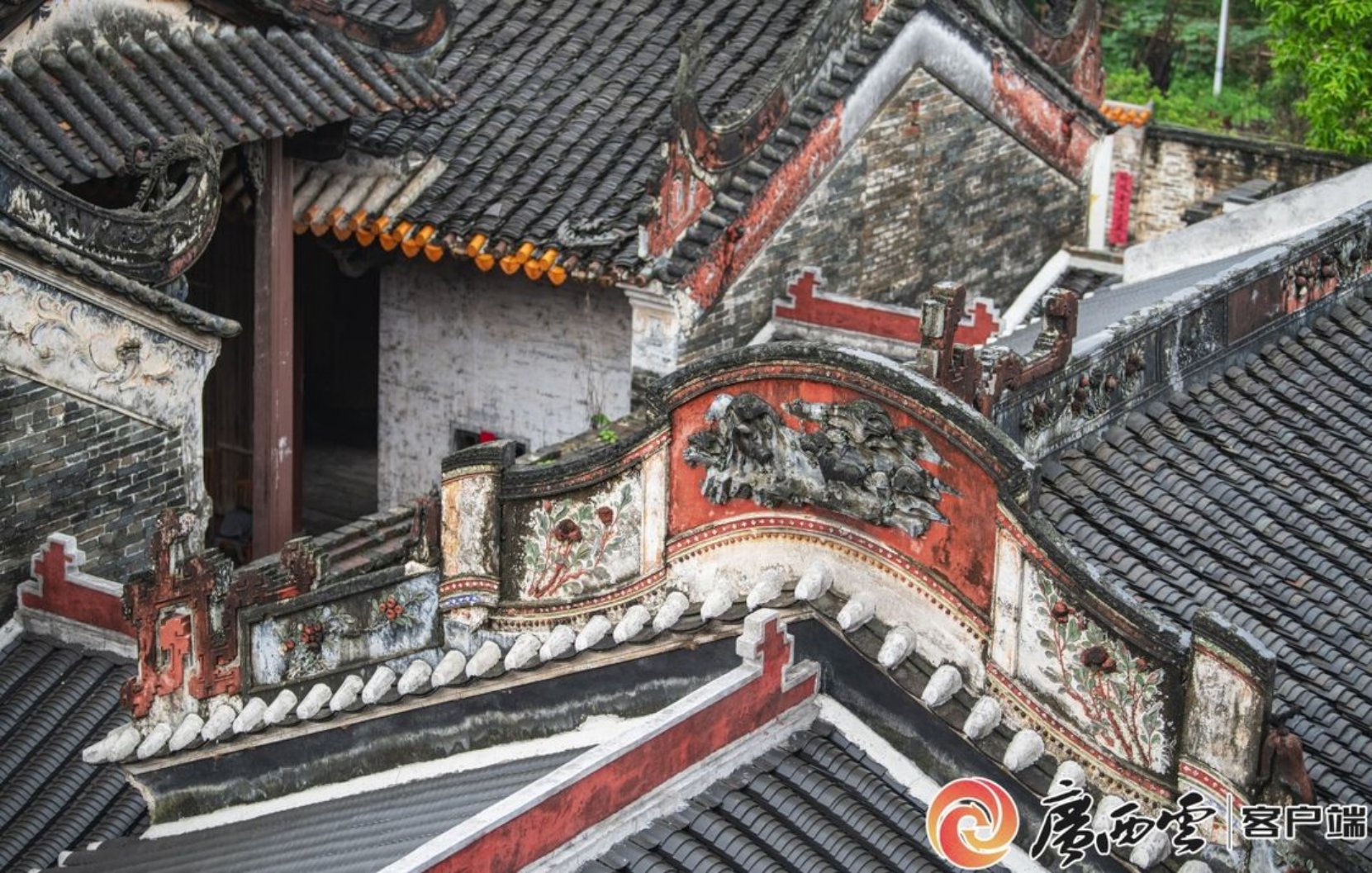 梧州市朱氏宗祠的浮雕瓦顶