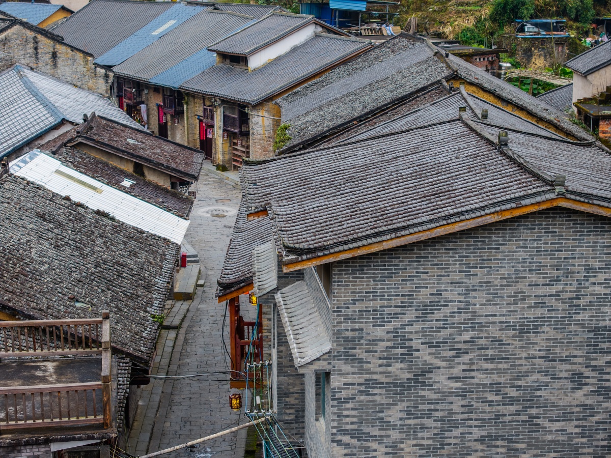 俯瞰龙腾村,青石板铺成的小巷联通着家家户户