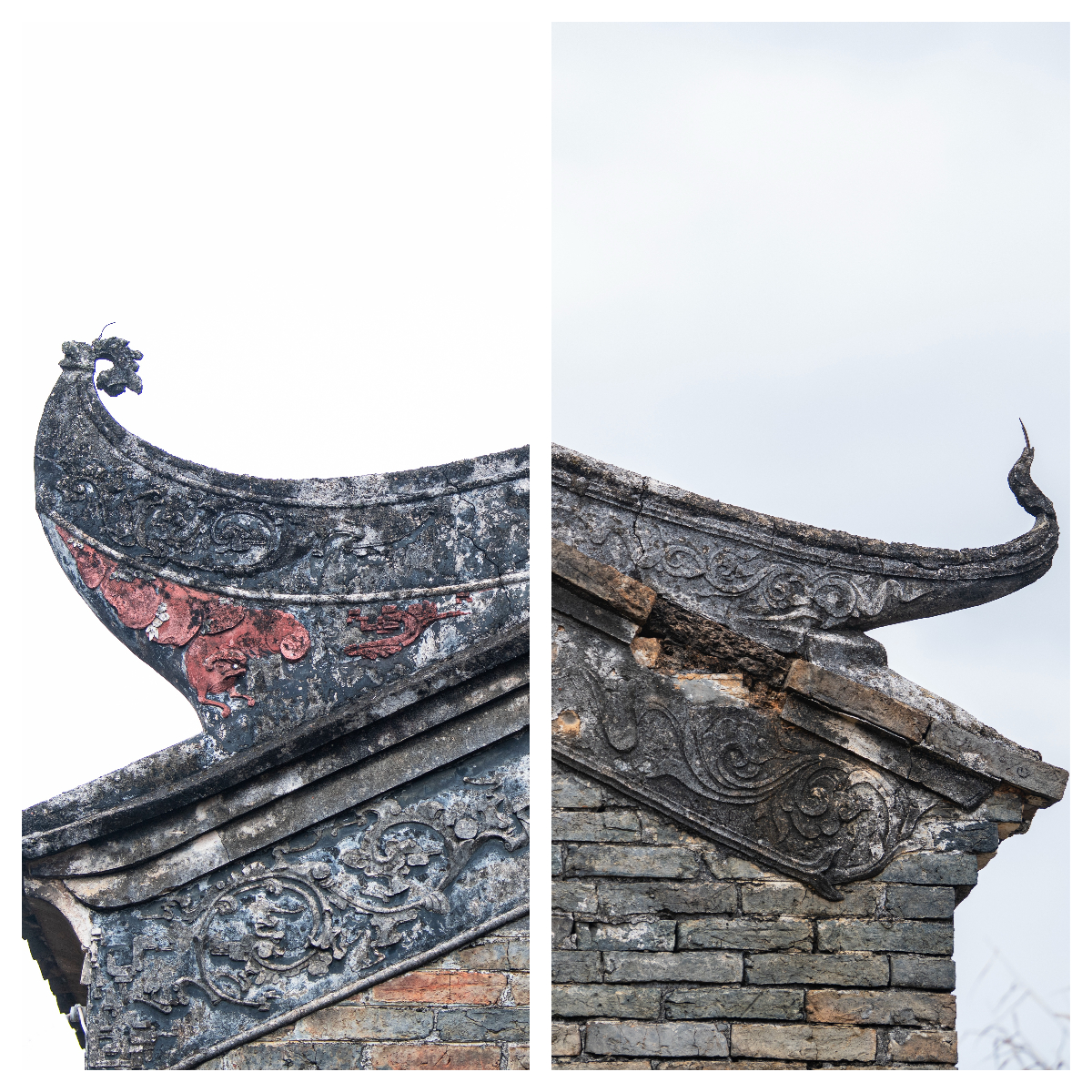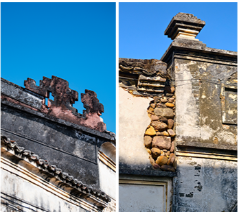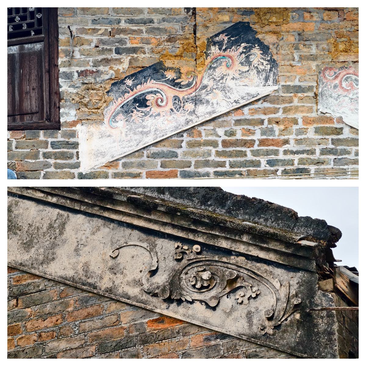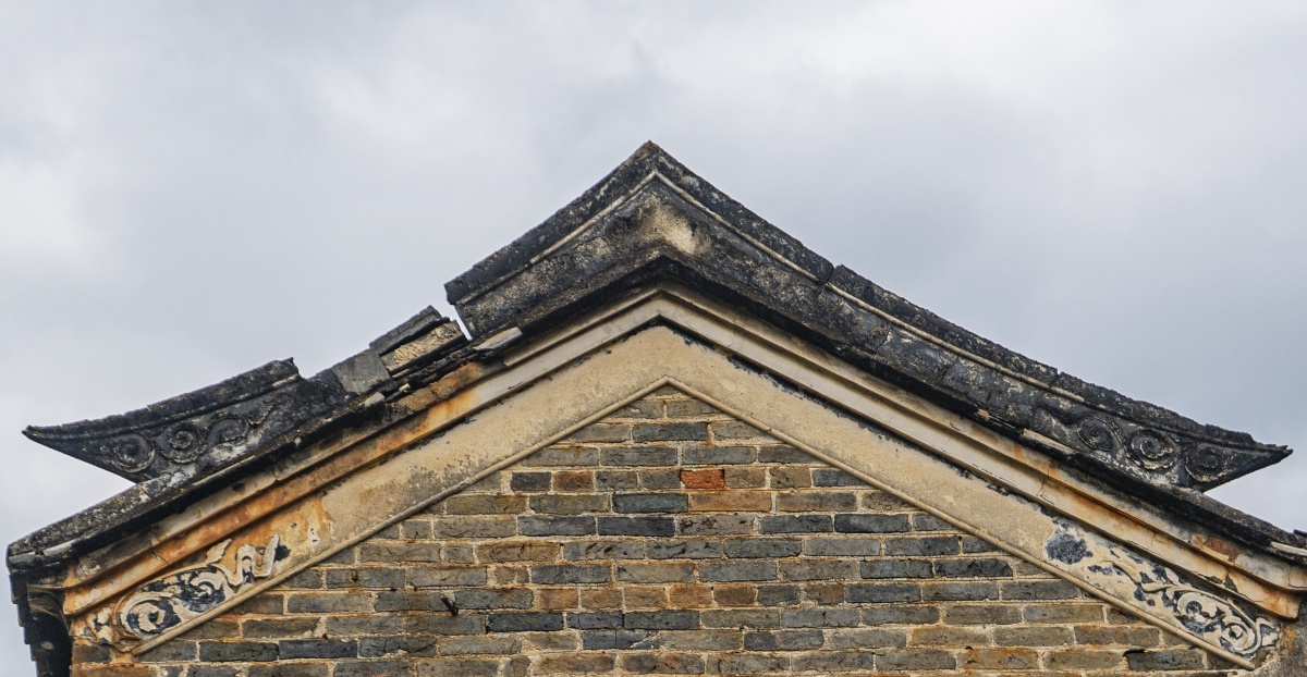 纳禄村古建筑的镬耳山墙局部,残存的装饰纹样尽显沧桑