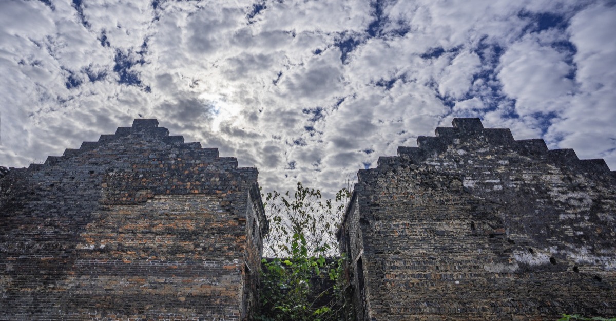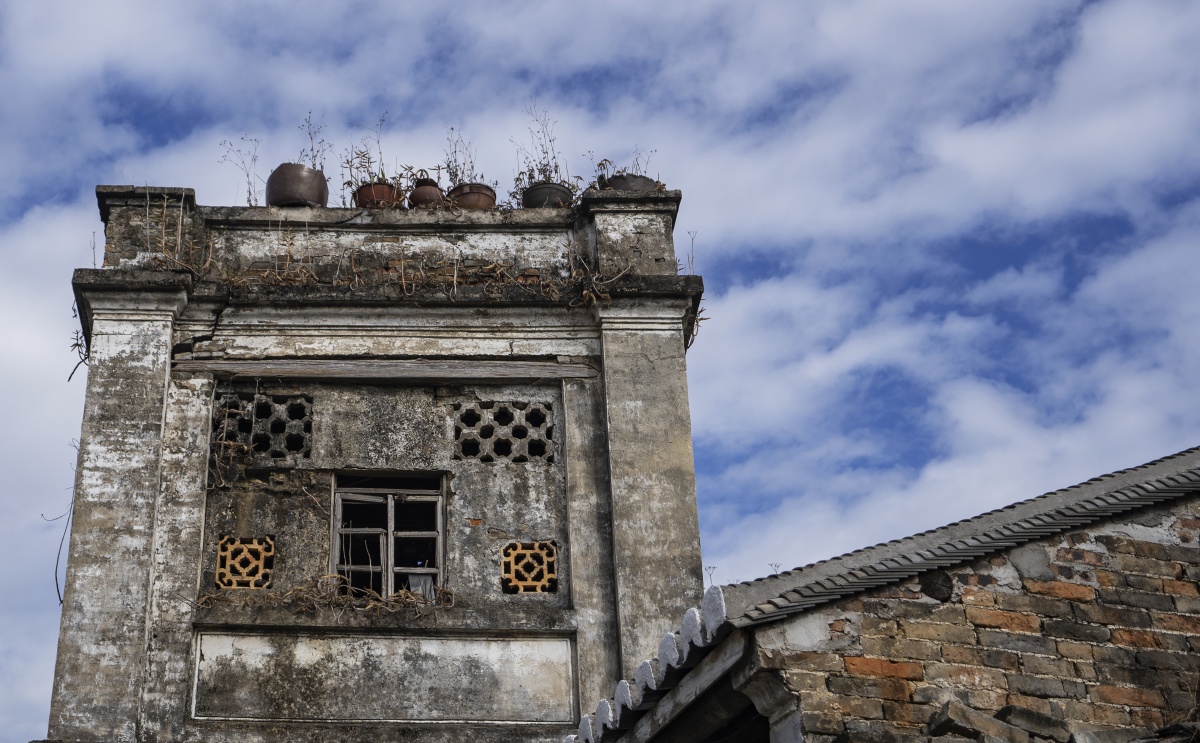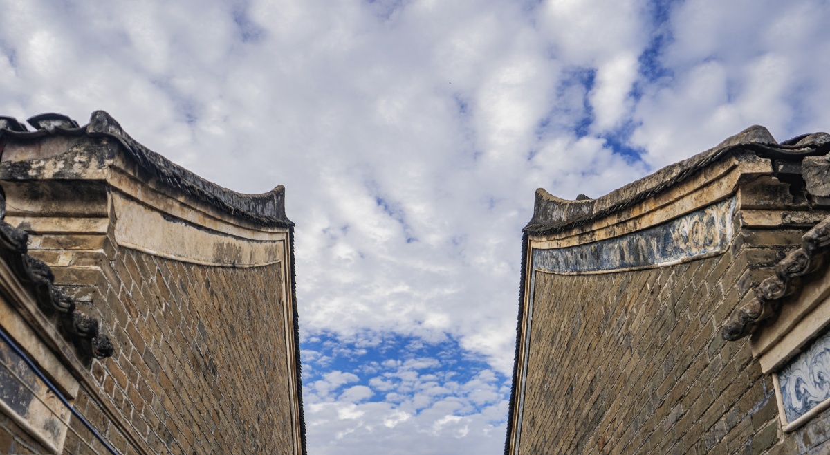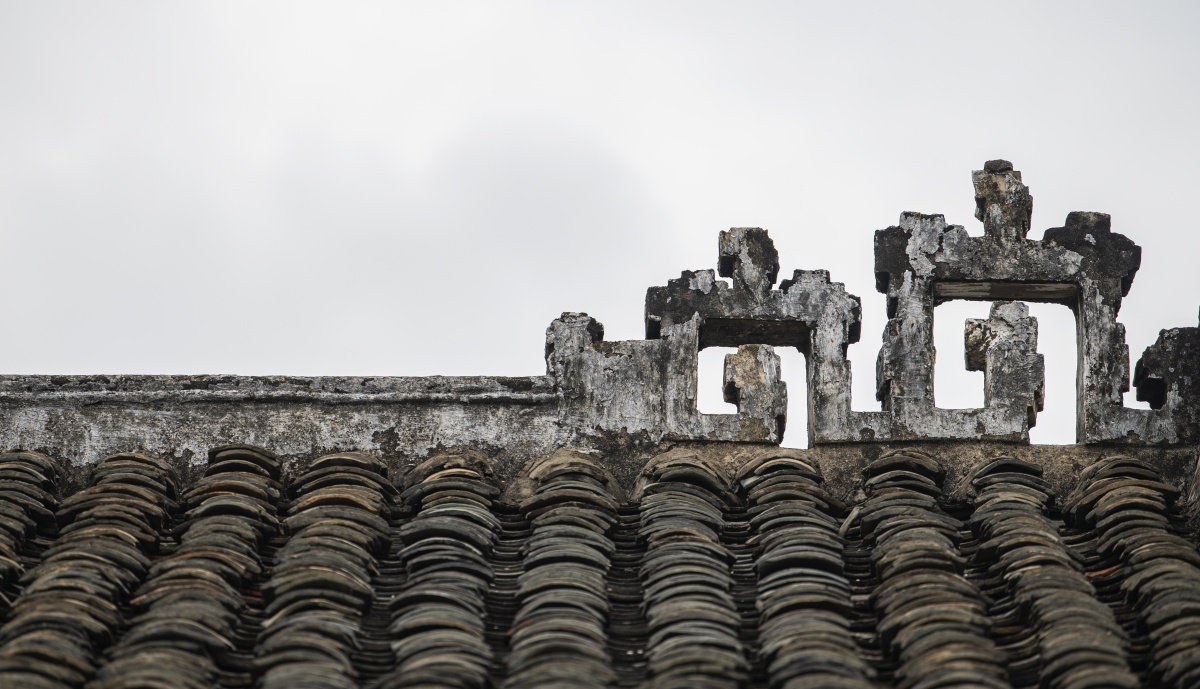 纳禄村古建筑的镬耳山墙局部,残存的装饰纹样尽显沧桑