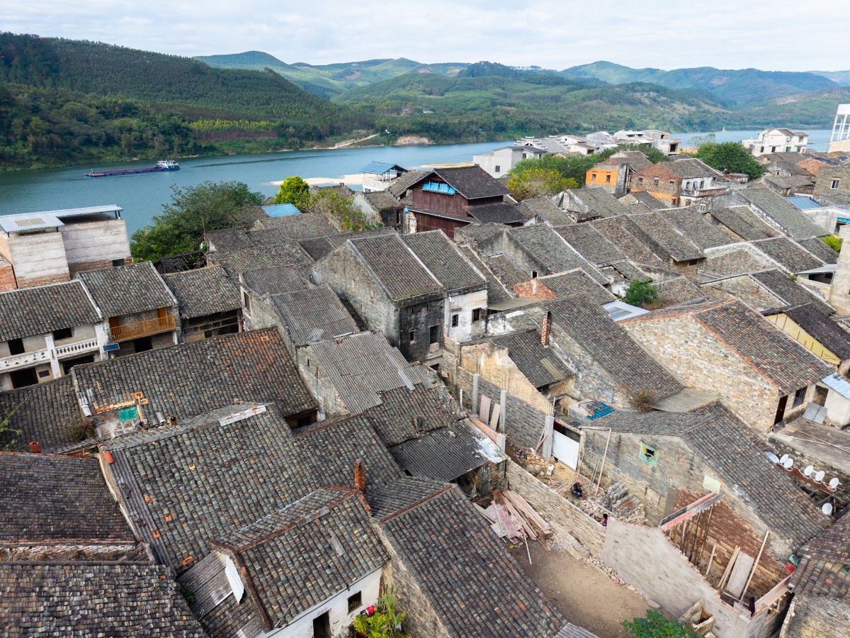 在象州县北部,柳江与罗秀河温柔交汇,于下游江心托起一座小岛,这便是运江古镇。它宛如一枚被时光遗忘的玉璧,静静沉卧于碧波之中,千年江流潺潺而过,锁住了悠悠乡愁。