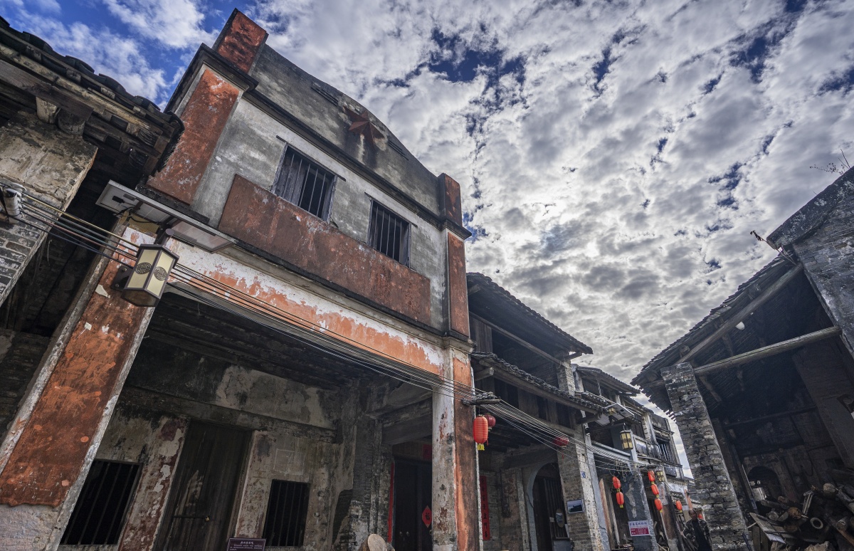 运江古镇中有大量岭南骑楼民居,一楼为铺、二楼为居