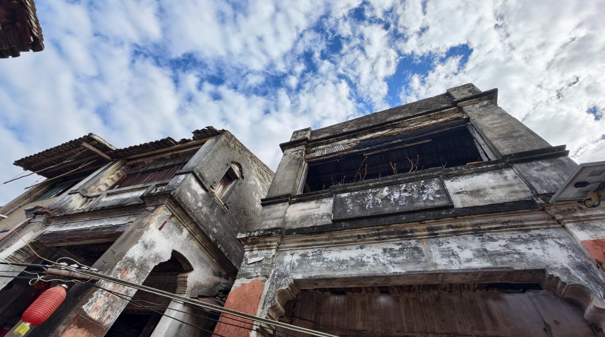 刘月鉴故居斑驳的墙面和古朴的木窗