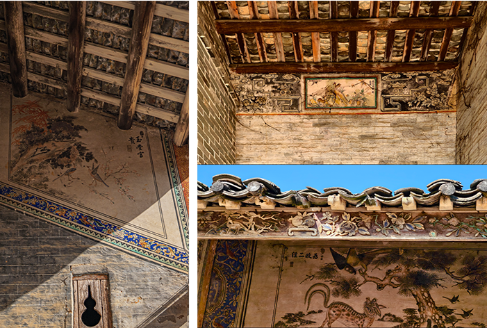 宅中墙上刻画有龙凤、花鸟等图案,历经百年仍清晰可见