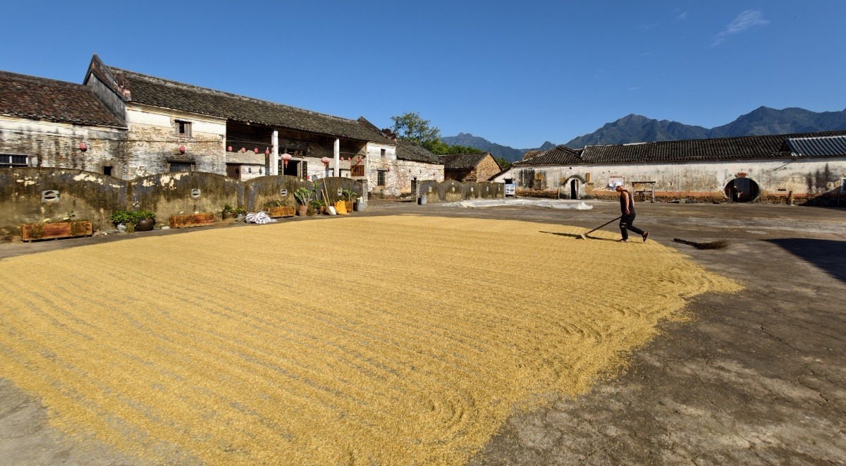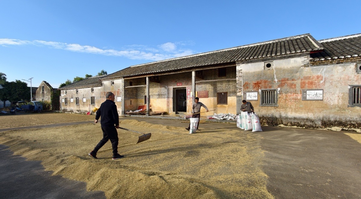 常有村民在古宅前晾晒稻谷