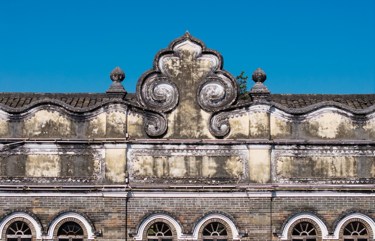 饰有传统纹样的屋顶檐角彰显传统岭南建筑风格