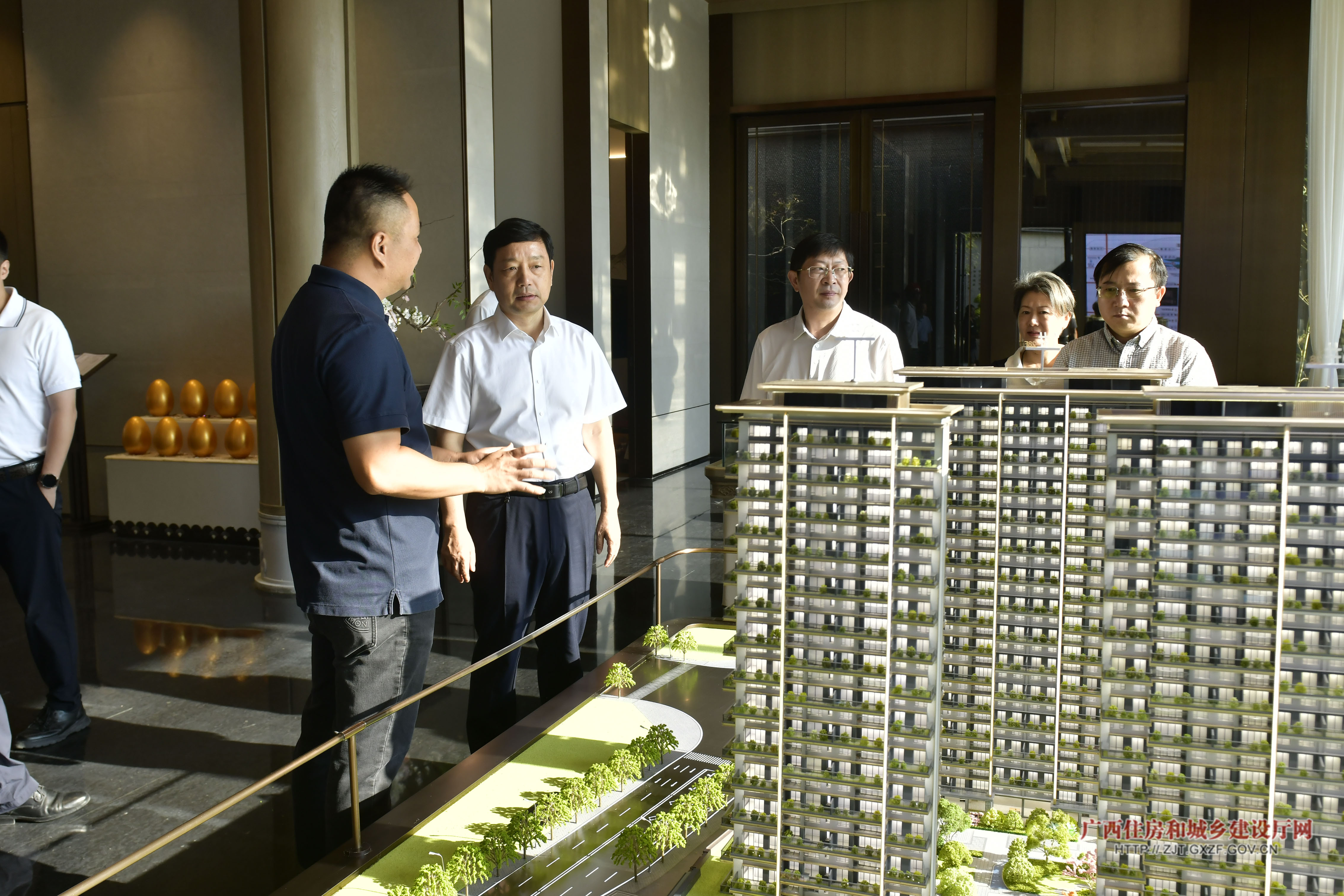 自治区住房城乡建设厅党组书记、厅长杨绿峰(左二)实地考察贺州市八步区“好房子”建设项目